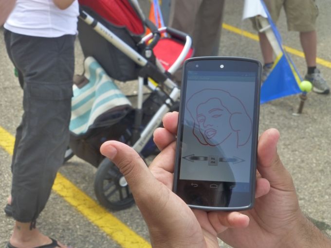 Here’s an example of a pattern the little monkey on the H20 Robot could draw: Marilyn Monroe. But on Sunday, it drew Frankenstein’s monster.