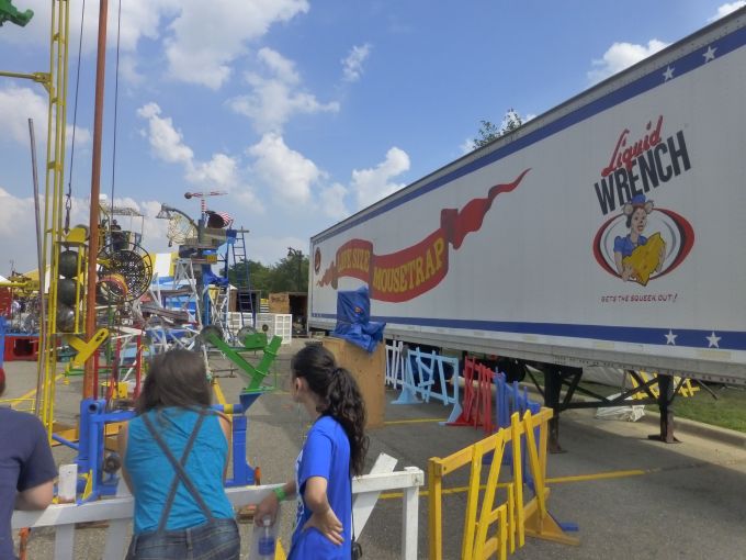 One of the highlights of Maker Faire Detroit was a human-size re-creation of the Mousetrap board game I remember being incredibly frustrated by in my childhood. Not sure why they called it a “Life-size Mousetrap,” since it was human-size, but anything that recaptures the fun of the old board game is fine with me.