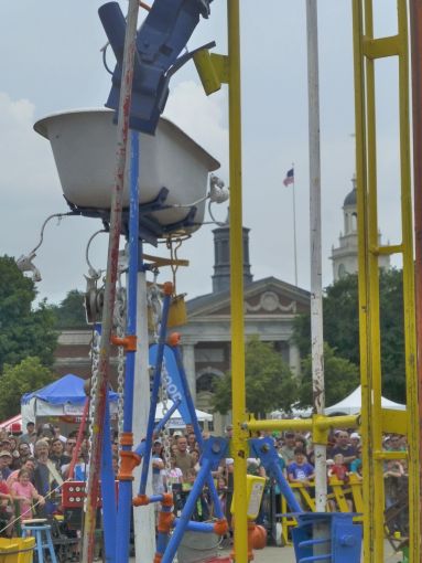 Resetting the Life-size Mousetrap involved a lot of climbing, ratcheting, and tugging of mechanical devices.