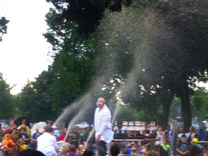 We were a good 40 feet from the stage, but the wind blew Coke Zero foam into our faces. Fortunately, the rain washed away the residue.