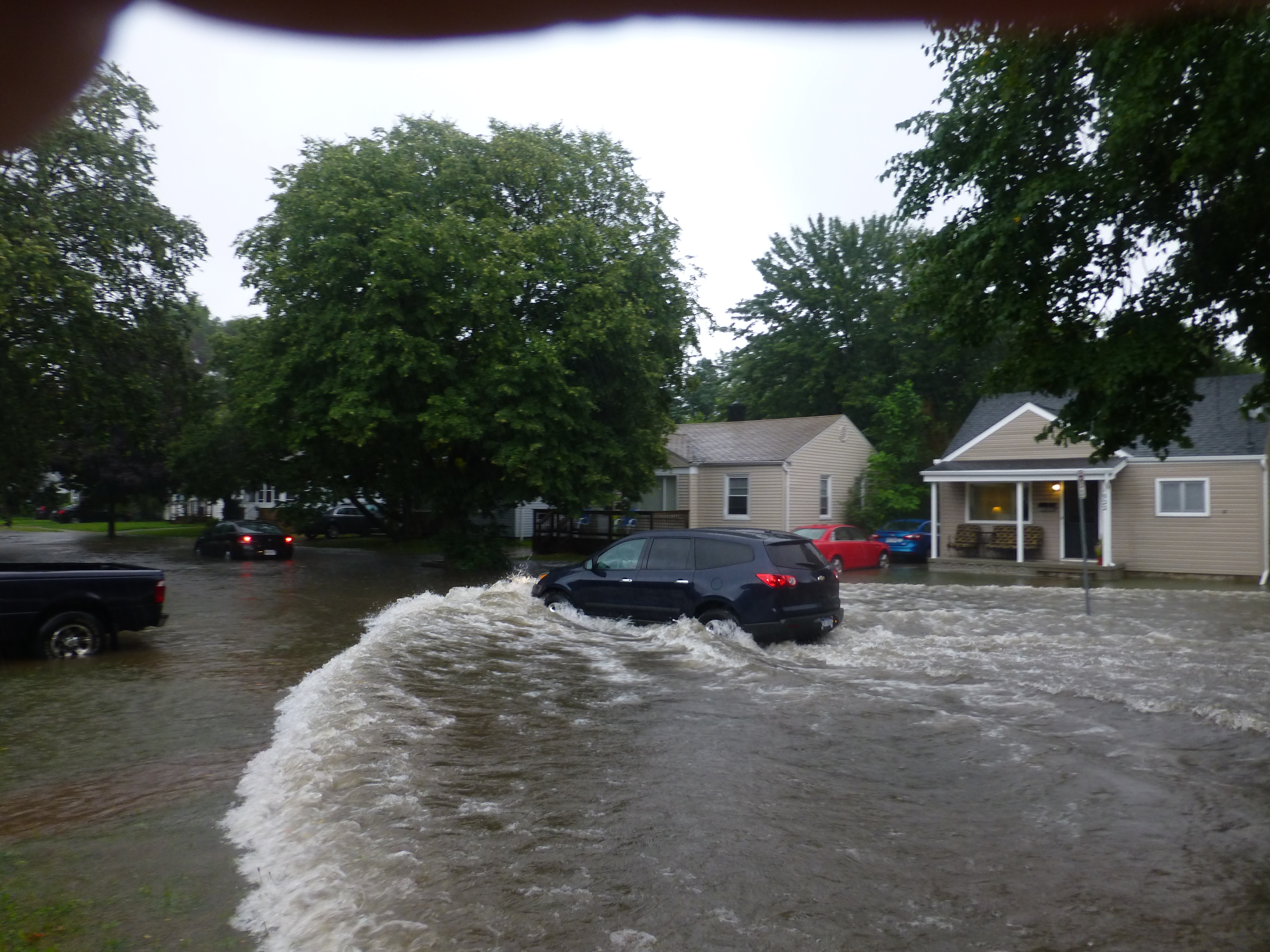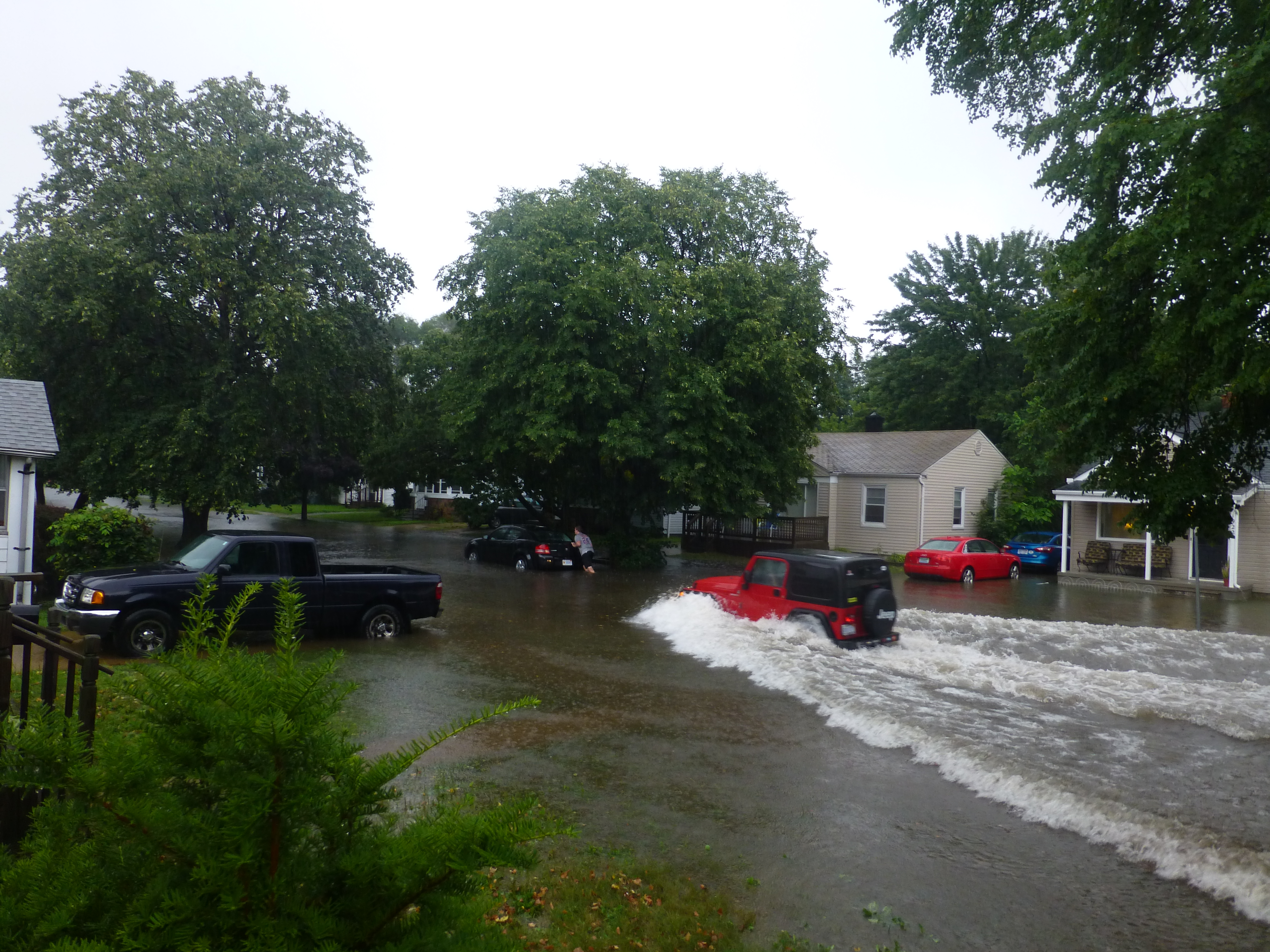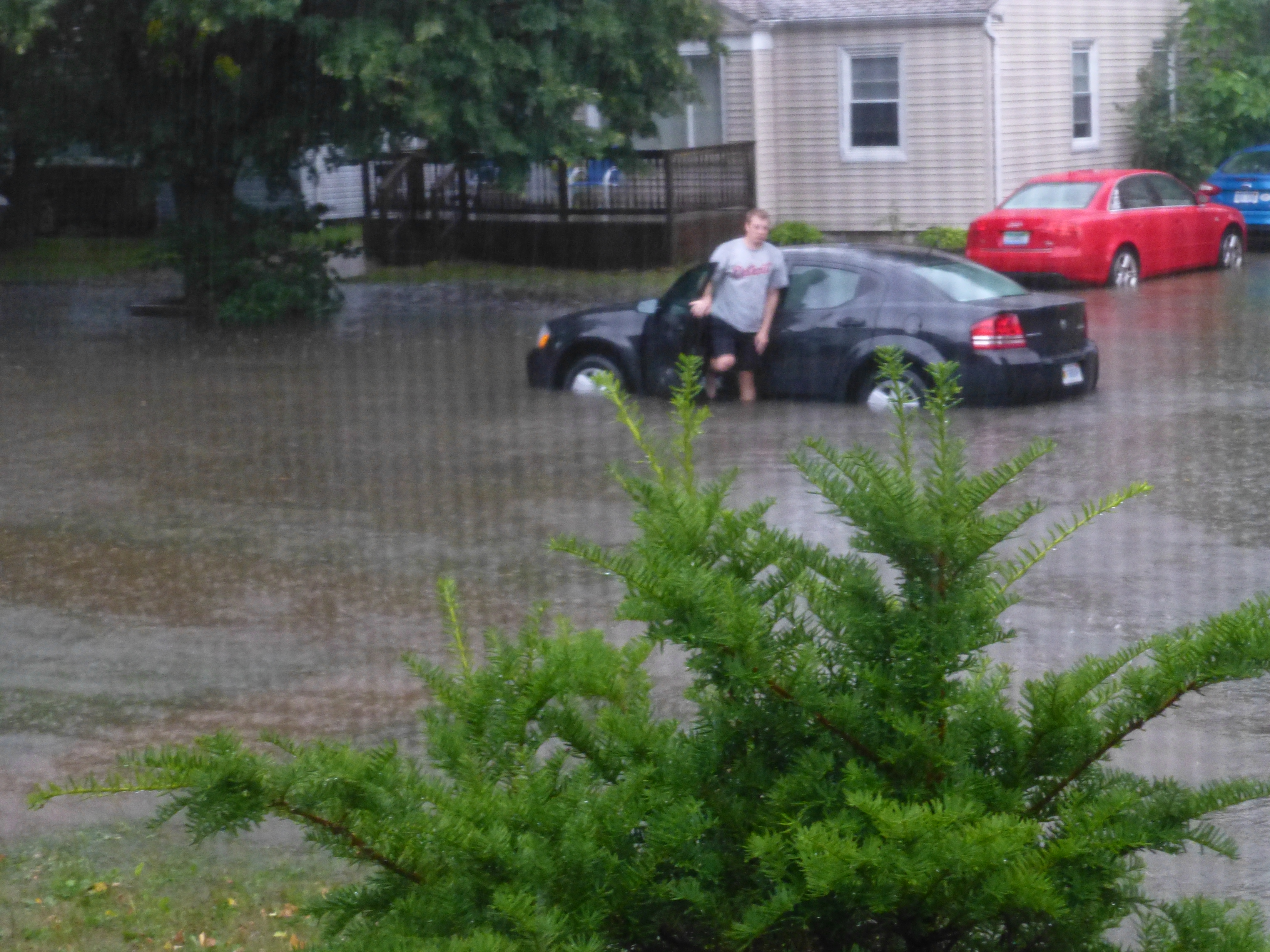 Water rose from the shower drain. It flowed like a fountain from the toilet. And the bathroom sink was bubbling up and over onto the floor. It reminded me of a scene from “The Amityville Horror” or “The Shining,” only not red. My memory is not clear since I was certainly operating on adrenaline at that point, but I think I closed my description with, “I’m pretty sure it’s not safe for me to be walking around in this water. I have got to get out of here!”