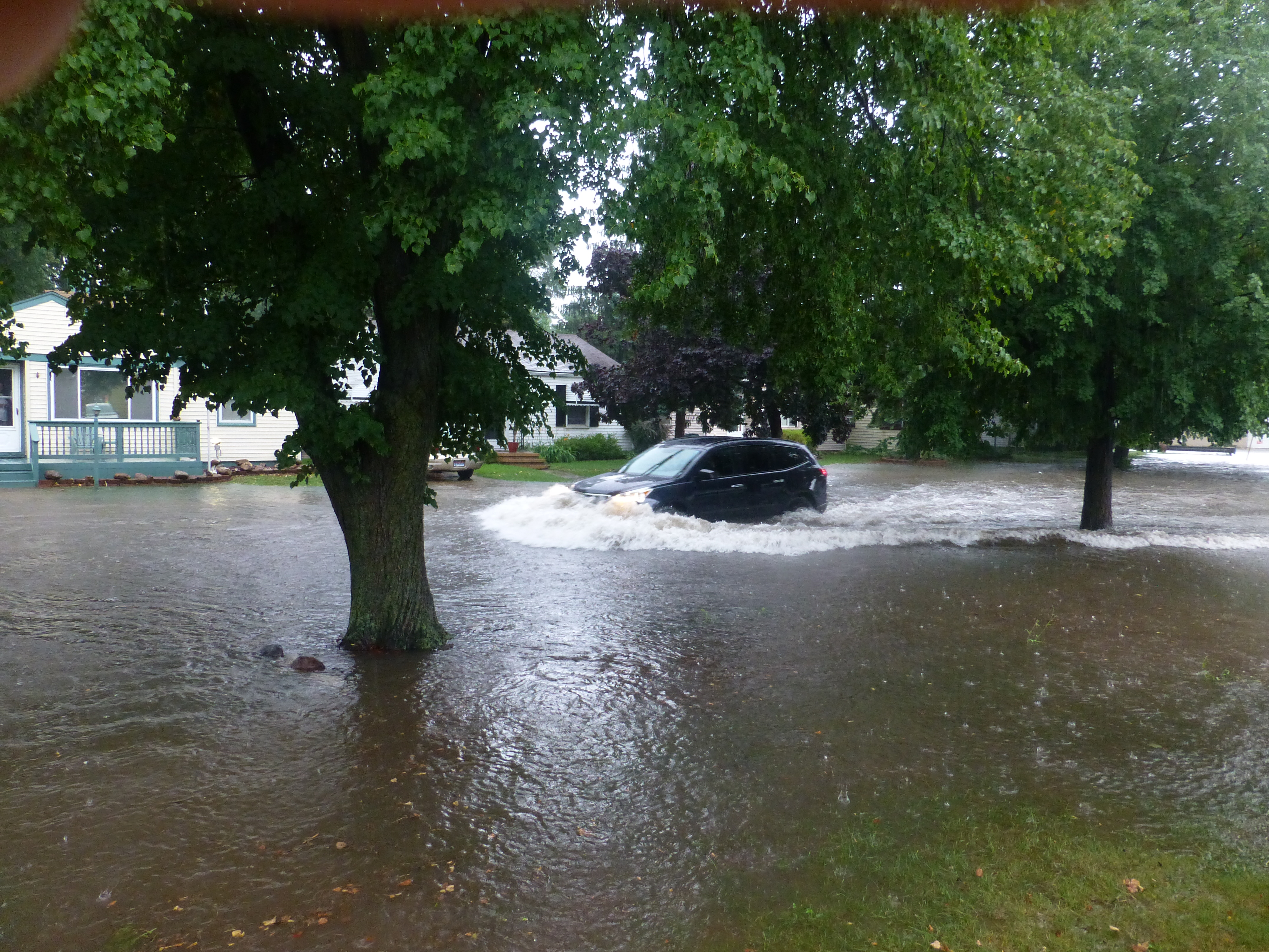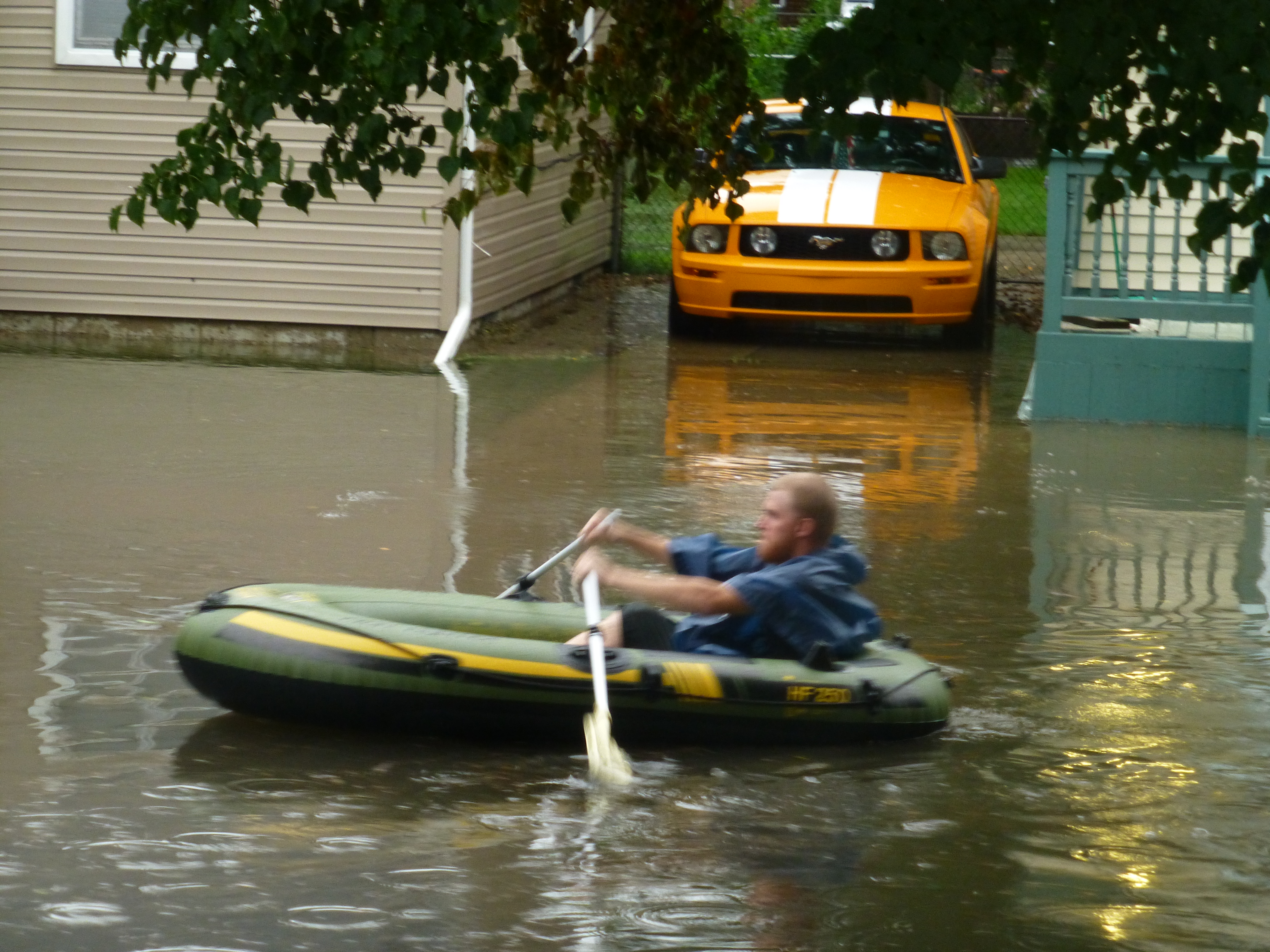 The property manager sent a contractor with fans to set up, and dry out the place after the water had all drained. The contractor pointed to the high-water mark, which was hip-deep on me and reached the fourth step from the bottom of the basement stairs.