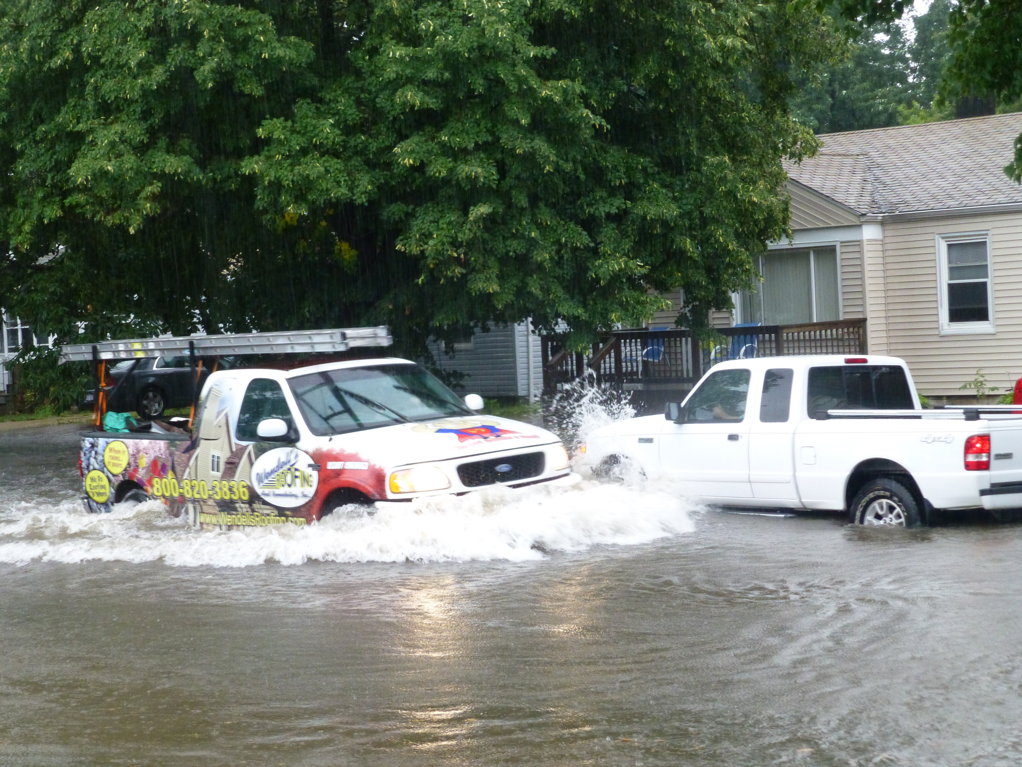 I grabbed my landlord’s business card out of my wallet and dialed the emergency number. “An emergency is a stopped-up toilet, loss of heating and air conditioning,” and some other thing I can’t recall at the moment that did not fit into the category of “torrents of water filling my basement.” Yeah, this would be an exception.